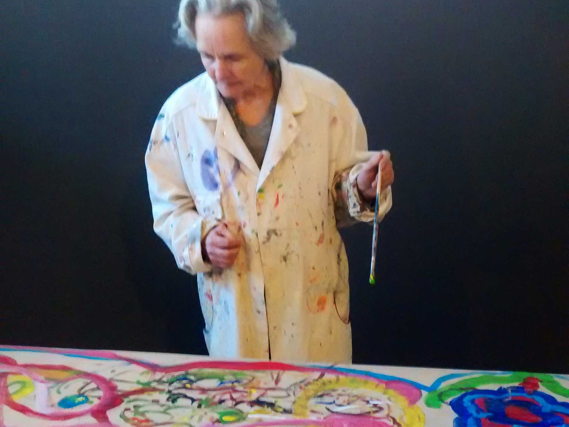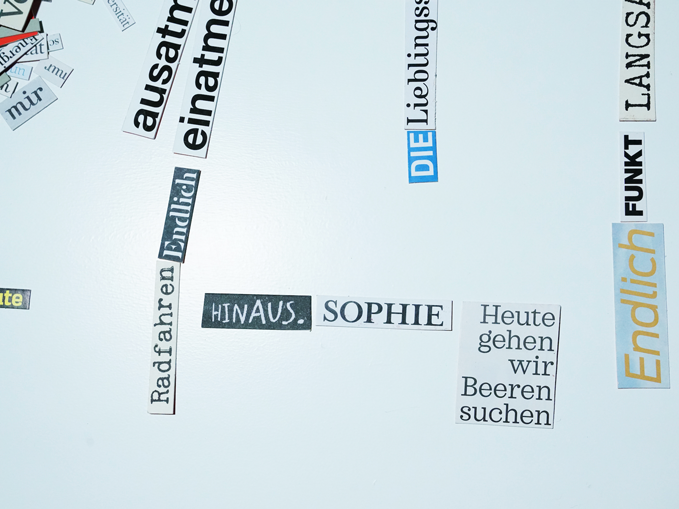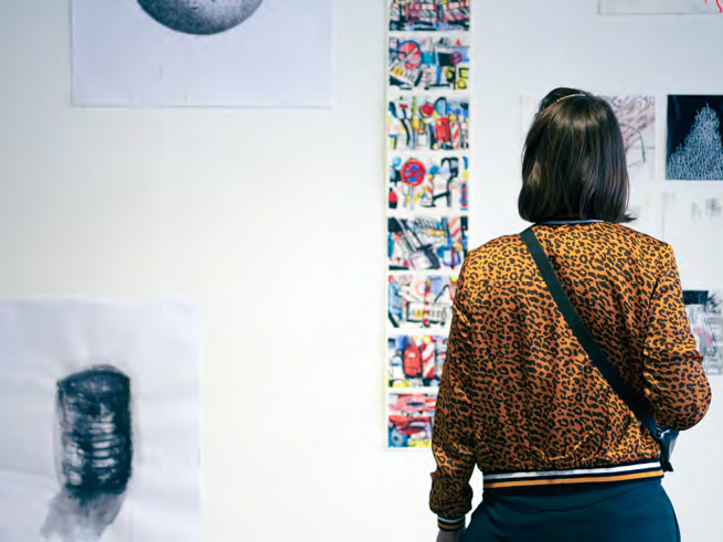 Heller Innenraum mit weißen Regalen und leuchtend orangefarbenen Buchständern, auf denen Fachliteratur präsentiert wird.